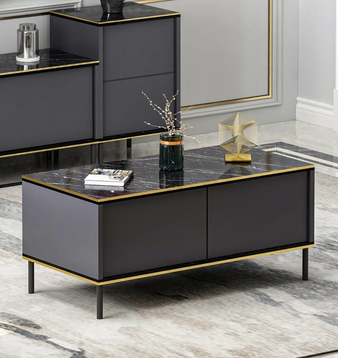 Журнальный столик Trendy Imaj Anthracit/Black Marble/Gold 90x40x45cm GTR006101