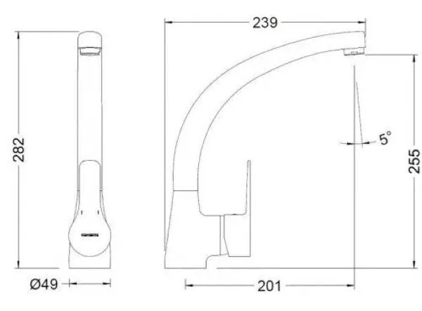 Высота излива255 мм