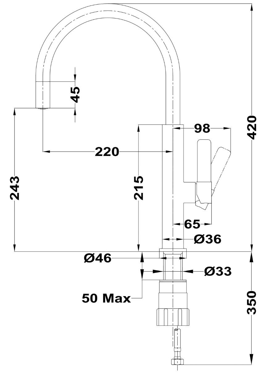 Длина излива220 мм