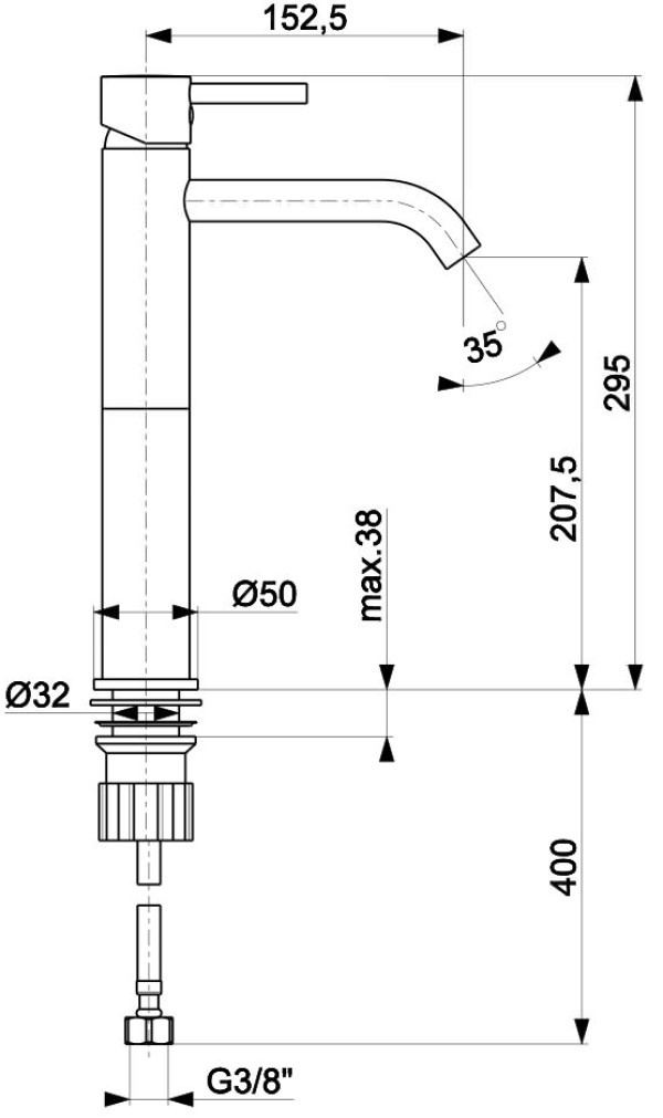 Длина излива152,5 мм
