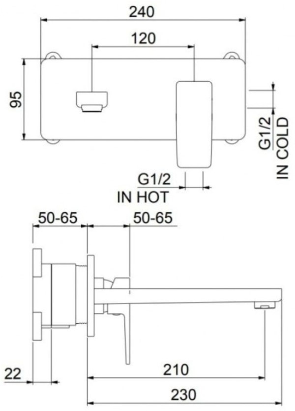 Длина излива210 мм