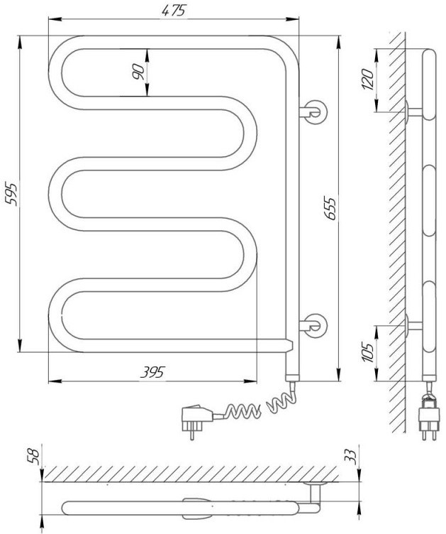 Полотенцесушитель Laris 25 PS5 450х570 Elektro Turning