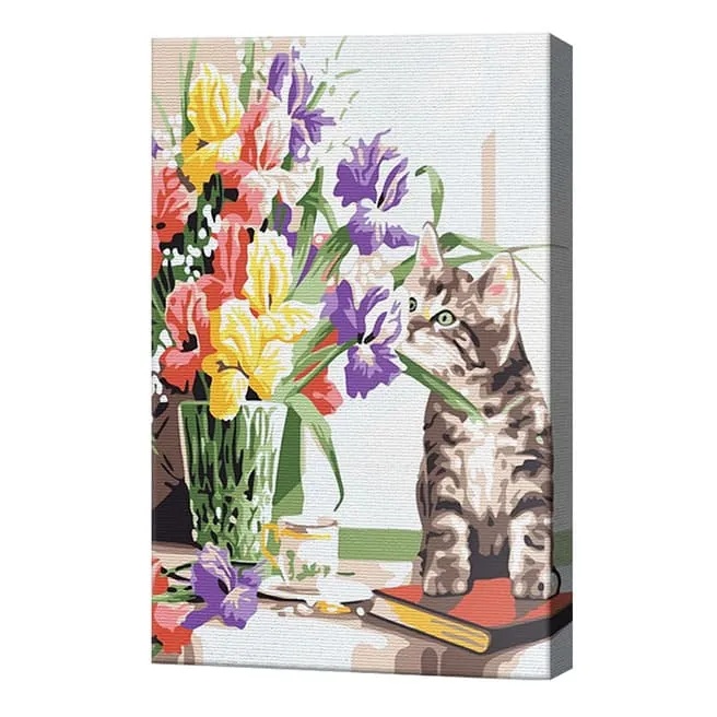 Картина по номерам Art Gallery Premium Котенок и букет цветов 20x30cm (CX3950)