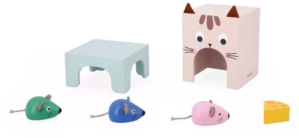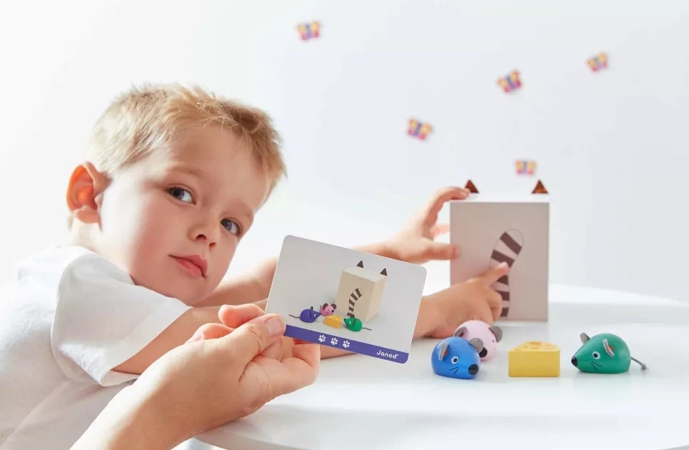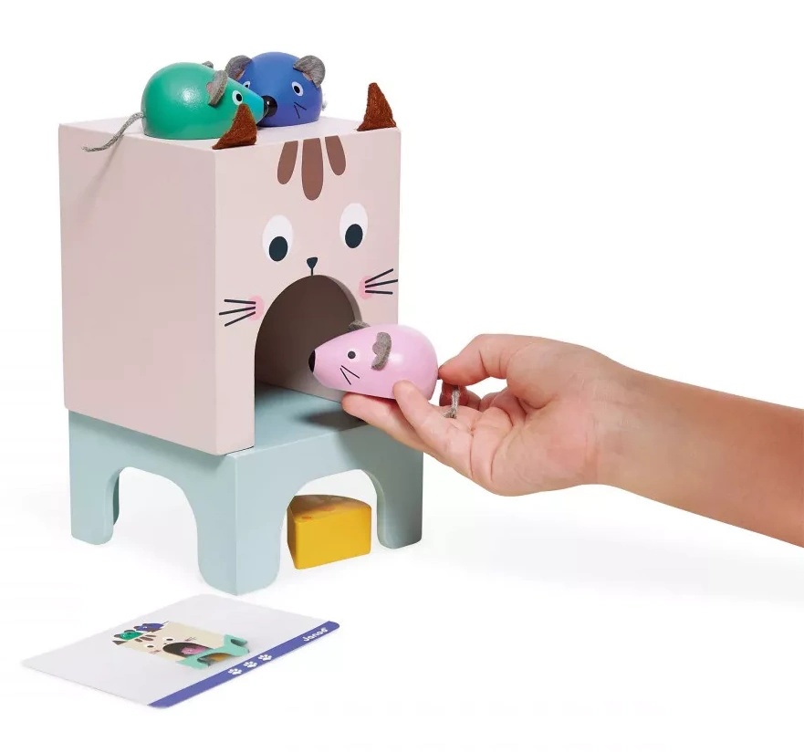 Пришло время бешеной погони за кошками и мышами! В этой совместной игре для детей от 3 лет и старше вас ждут 3 деревянные мышки (каждая разного цвета), ломтик сыра и кошка (которую символизирует коробка). Малышам будет предложено воспроизвести сцену, указанную на одной из 12 двусторонних карточек с моделями, используя при этом соответствующую лексику: впереди/сзади, сверху/снизу, на/внутри, внутри и т. д. Они также будут развивать свои наблюдательные способности. навыки. 3 уровня сложности представлены цветом карт. Дети смогут постепенно перейти от размещения 2 элементов к 6. Эту игру можно использовать индивидуально или вместе со взрослыми, когда взрослый описывает сцену, которую ребенок попытается воспроизвести, одновременно развивая навыки устного понимания. Более того, эта деревянная развивающая игра очень красивая! Детям понравится открывать и манипулировать этими очаровательными маленькими мышами и их сыром, играя в прятки с кошкой! Листовка с инструкциями поможет вам извлечь максимальную пользу из этой игры, предназначенной для самых маленьких.
