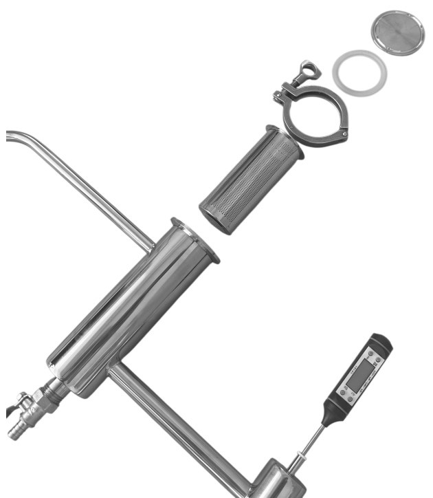 Многофункциональная крышка оборудована клапаном сброса избыточного давления, возникающего в случае неправильной эксплуатации самогонного аппарата. Кламповое соединение диаметром в 2 дюйма предназначено для расширения базовой комплектации аппарата. Крышка надежна крепится на перегонном кубе при помощи герметичного зажимного хомута, не позволяющего лишним запахам выбраться наружу.
