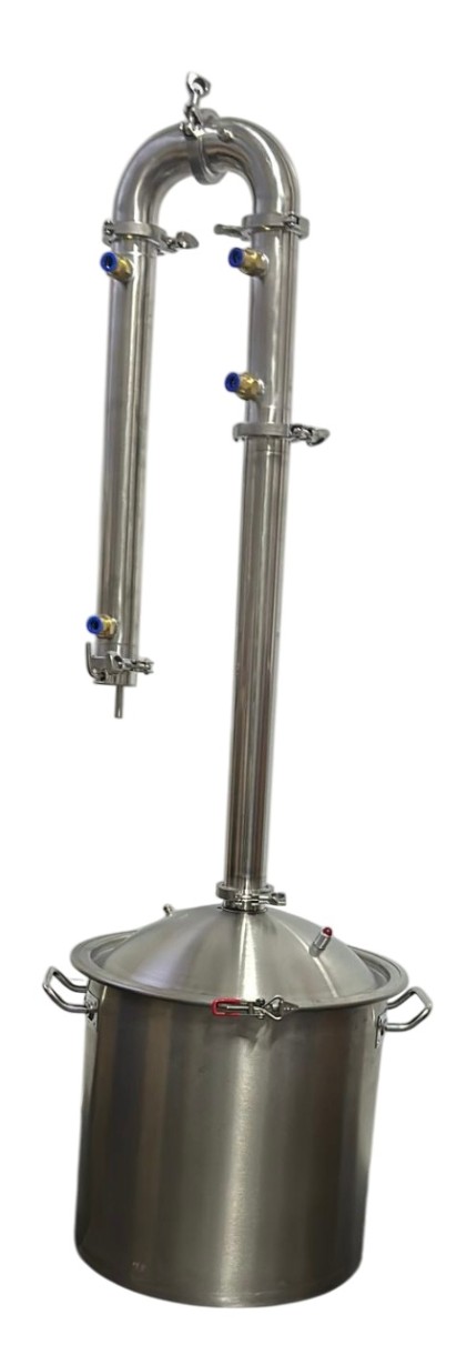 Самогонный аппарат «Абсолют Premium» 25л Незаменим при приготовлении домашнего авторского алкоголя. С его помощью вы приготовите кристально чистый продукт премиального качества крепостью более 90% Улучшенная конструкция Колонна состоит из кожухотрубного холодильника и дефлегматора. Внутри расположено семь трубок диаметром 10 мм. За счет этого колонна обладает высокой производительностью и способна работать при мощности нагрева свыше 5 кВт, выдавая до 7 литров готового продукта в час и обеспечивая моментальную конденсацию пара Повышенная степень очистки Внутри царги расположено четыре регулярные проволочные насадки Панченкова, которые способствуют дополнительной очистке дистиллята. Пар, проходя через царгу, конденсируется на дефлегматоре и спускается в виде флегмы, не давая сивушному маслу попасть в конечный продукт. Безопасность и простота Многофункциональная крышка оборудована клапаном сброса избыточного давления, возникающего в случае неправильной эксплуатации самогонного аппарата. Кламповое соединение диаметром в 2 дюйма предназначено для расширения базовой комплектации аппарата. Крышка надежна крепится на перегонном кубе при помощи герметичного зажимного хомута, не позволяющего лишним запахам выбраться наружу. Универсальность использования Ферромагнитное дно толщиной 4 мм позволяет использовать перегонный куб на любой нагревательной поверхности: электрической, стеклокерамической, газовой и индукционной. Бак также можно использовать как емкость для брожения, установив в крышку гидрозатвор. Съемный ТЭН Приобретая модель в сборке с электрическим ТЭНом и регулятором мощности, вы можете проводить дистилляцию, установив её прямо на пол, что является существенным плюсом для тех, кто не может поставить устройство на плиту, поскольку этому мешает вытяжка. Перегонный куб с купольной крышкой Благодаря сферической форме перегонные кубы с купольной крышкой имеют больший объем. Выход под фланец самогонного аппарата располагается значительно выше уровня перегоняемой браги, таким образом создается демпферная область для пенообразования, и готовый продукт защищается от брызгоуноса. Следовательно, увеличивается полезный объем для заливаемой жидкости, и теперь можно наполнять емкость почти до краев, а не как принято до 3/4 от общей высоты. Так же вы дополнительно можете приобрести увеличитель куба, получив, таким образом, в два раза больший объем вашего перегонного куба при необходимости.