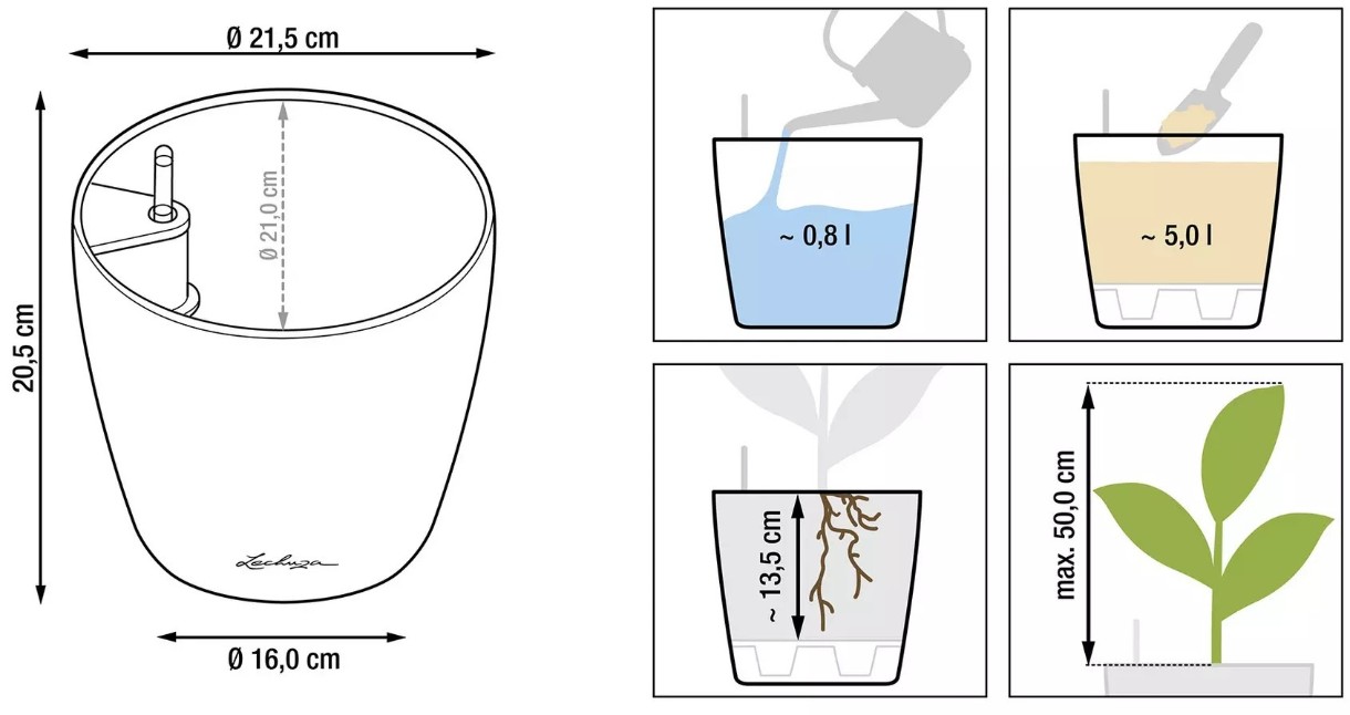 Характеристики Цветочный горшок Lechuza Classico Color 21 White