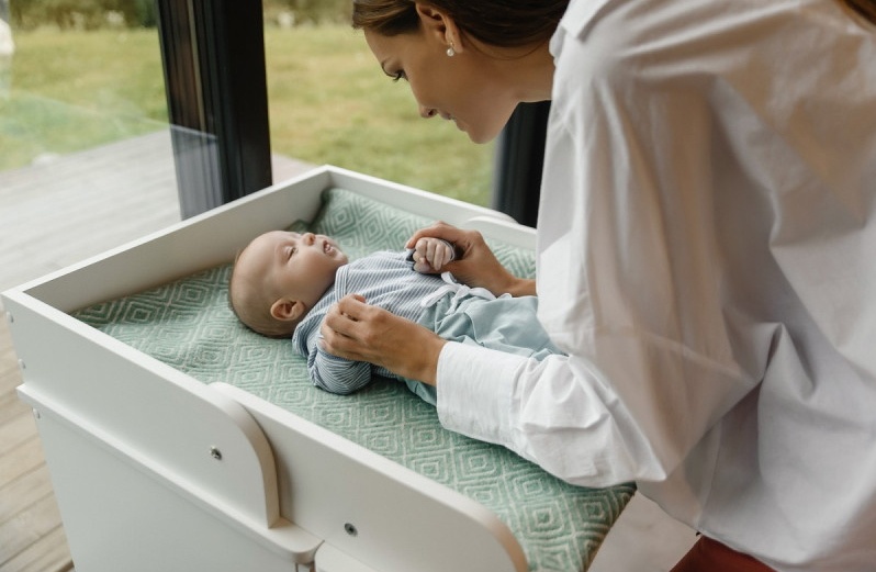 Верхняя часть комода легко откидывается и превращается в удобный пеленальный столик. А закругленные боковые бортики позволят безопасно провести переодевания Вашего малыша.