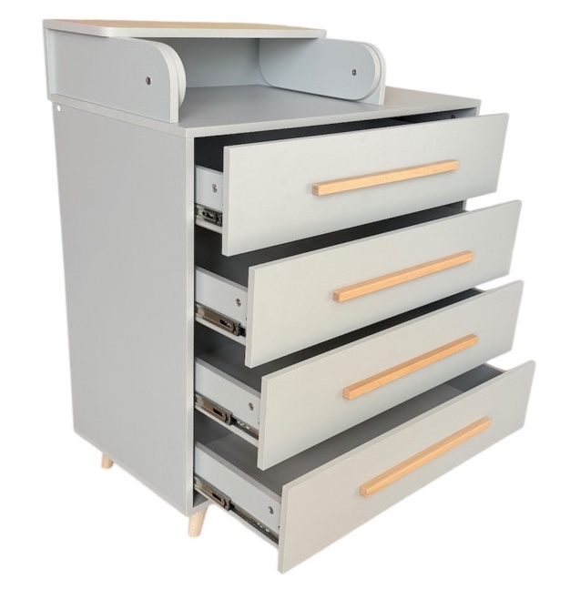 Комод-пеленатор Napoli90 сделает комфортным любой детский интерьер. А все вещи, которые так нужно держать в одном месте, уместятся в 4 вместительные выдвижные ящики.