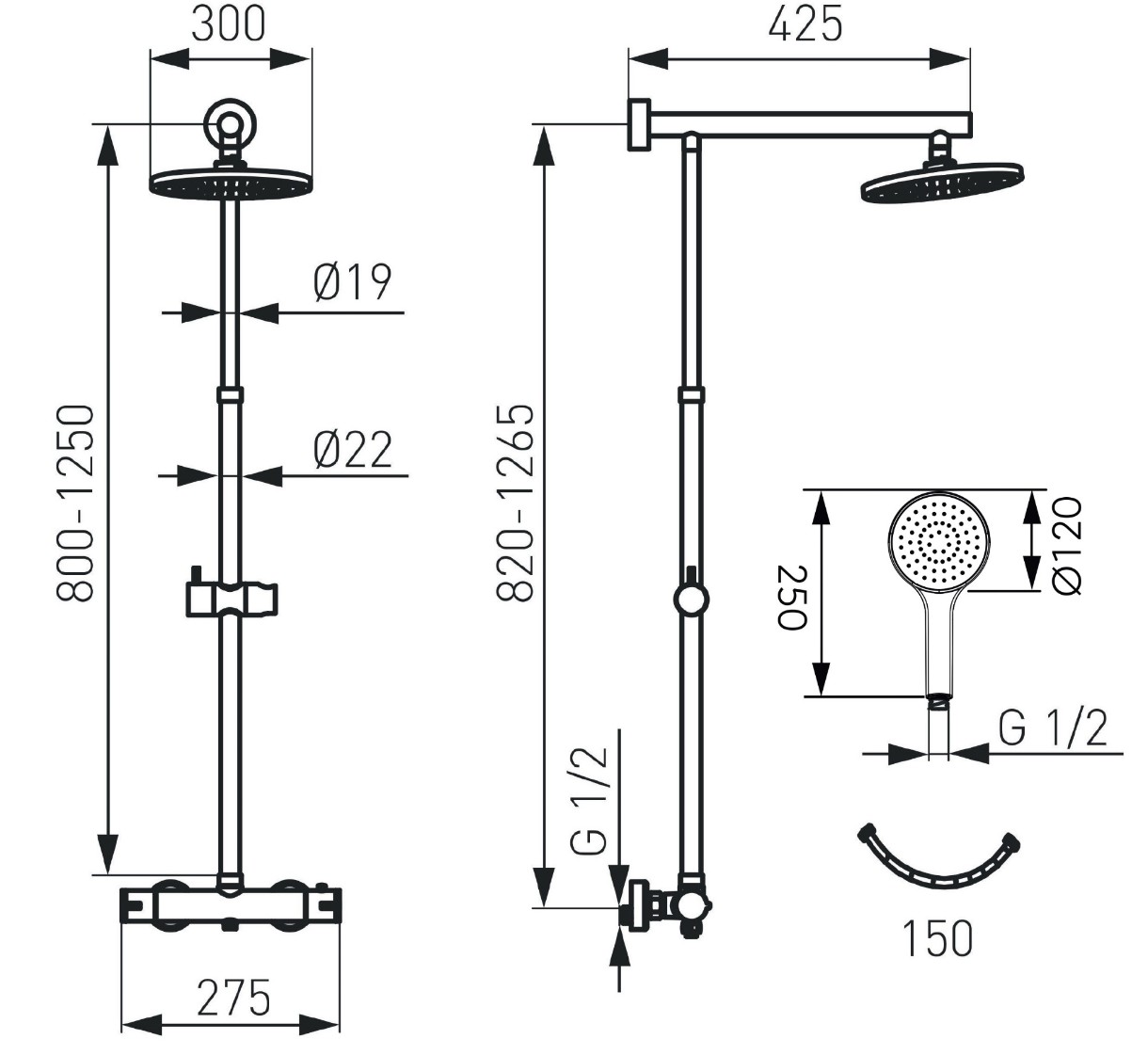 Высота1250 mm