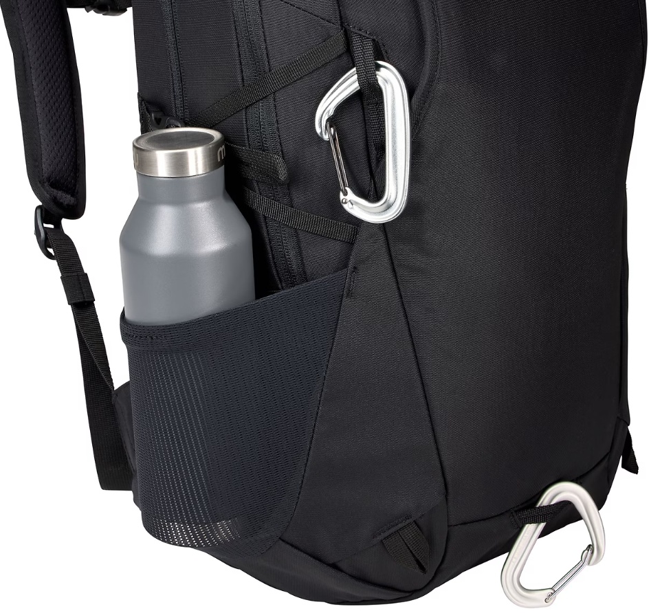 — Сетчатые внешние боковые карманы растягиваются, чтобы вместить бутылку с водой, блок питания или зонтик
