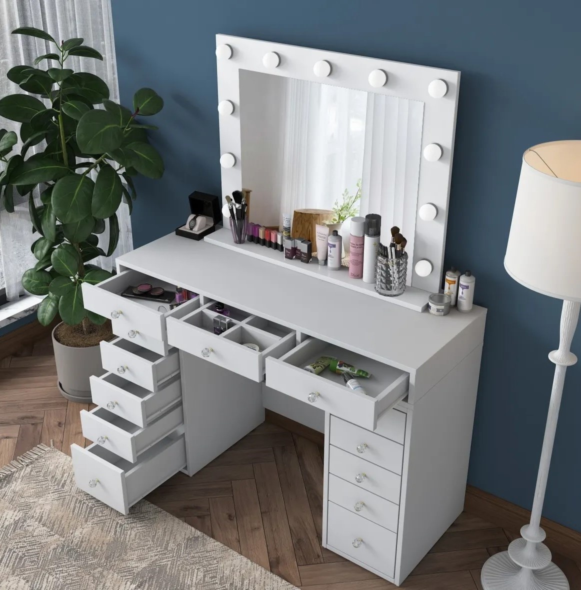 Устали спешить по утрам, пытаясь найти любимую помаду или тушь? Попрощайтесь с хаосом и создайте красиво организованное пространство с нашим столиком для макияжа. Разработанный с учётом функциональности и стиля, он изменит ваше утро.