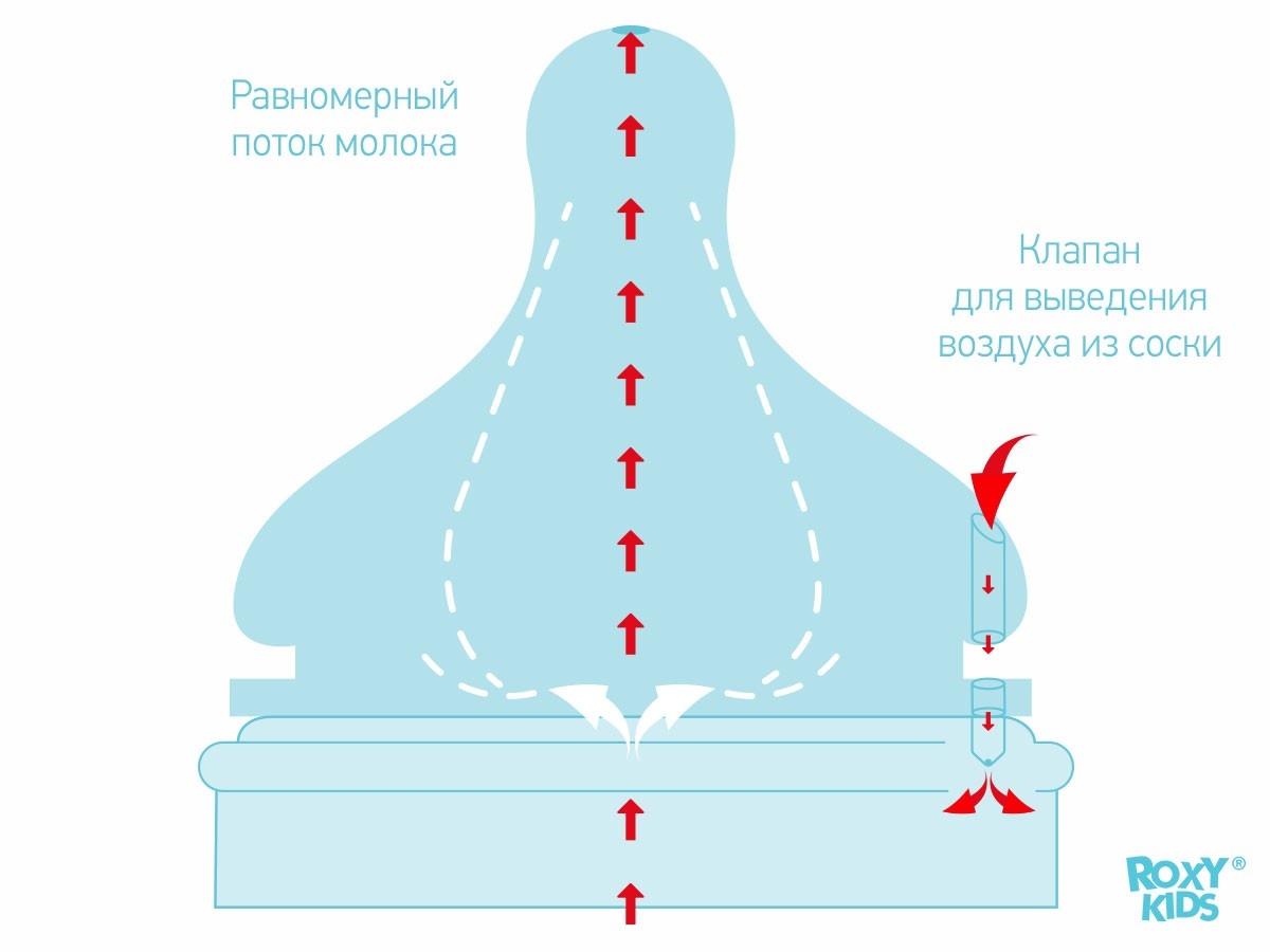 Антиколиковый клапан предотвращает чрезмерное заглатывание воздуха и возникновение колик.