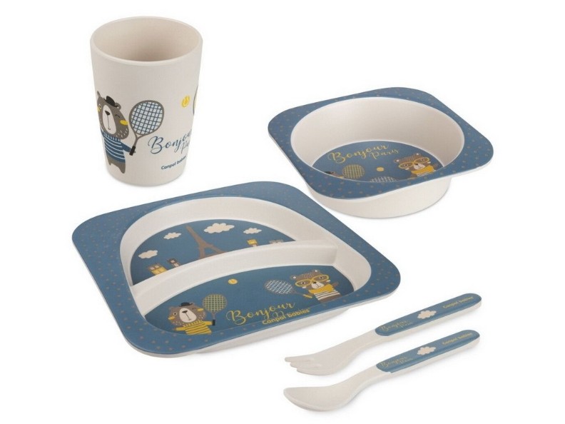 Набор посуды BONJOUR PARIS — экологически чистая альтернатива классическим тарелкам и мискам из пластика. Набор посуды изготовлен из прочных, небьющихся и пригодных для контакта с пищевыми продуктами материалов с использованием натурального сырья – 50 % древесной муки и 30 % пищевого кукурузного крахмала (и 20 % меламиновой смолы). В комплект входят: тарелка, миска, чашка и столовые приборы – вилка и ложка. Столовые приборы имеют закругленные края, благодаря чему они безопасны для полости рта ребенка и нежных десен. Набор детской посуды BONJOUR PARIS с милыми принтами побудит вашего ребенка съесть еду. Набор посуды Canpol baby идеально подходит для детей старше 12 месяцев, которые учатся есть и пить самостоятельно. Можно мыть в посудомоечной машине с использованием неокрашенных кубиков и мягких моющих жидкостей. Набор посуды для малышей BONJOUR PARIS идеален дома, на отдыхе или во время пикника.