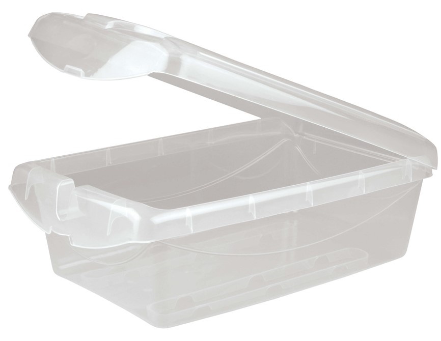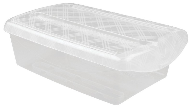 Ящик с откидной крышкой предназначен для хранения обуви, игрушек, повседневных мелочей и т. д. Ящики хорошо штабелируются. Особенность конструкции — система Anti-Slip. Она не позволяет стоящим сверху ящикам соскользнуть при открытии крышки нижнего ящика. Это особенно удобно при хранении обуви или детских игрушек. Через прозрачный корпус видно содержимое ящика — нужную вещь легко найти. На крышке предусмотрены отверстия для вентиляции.