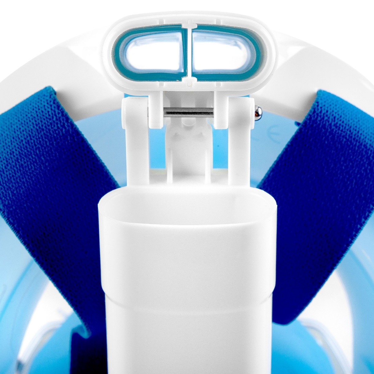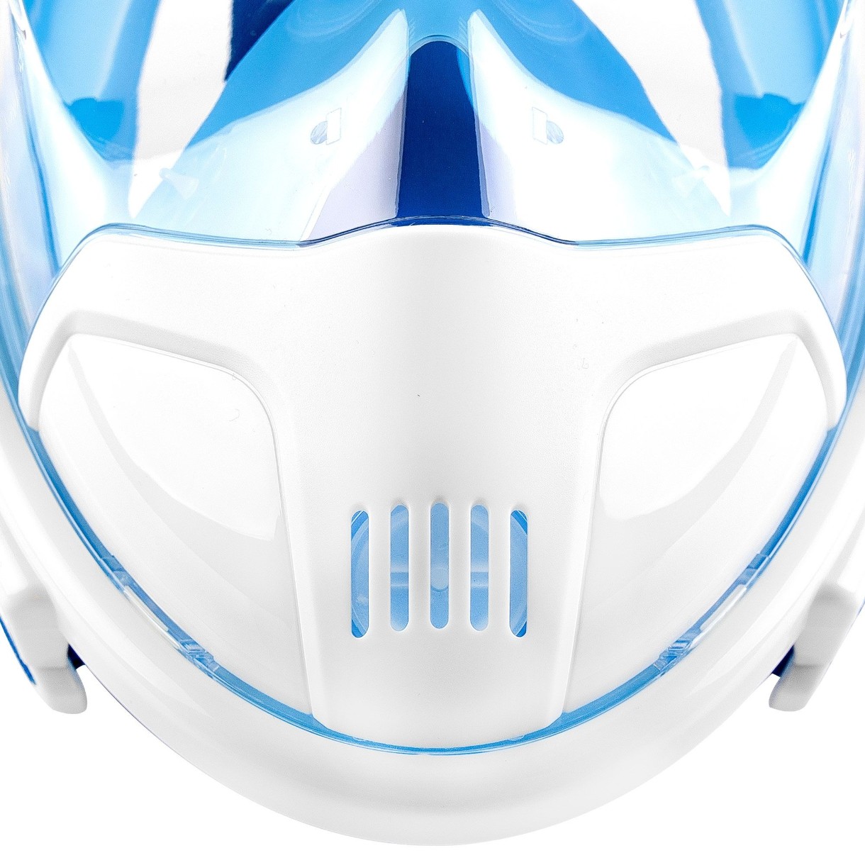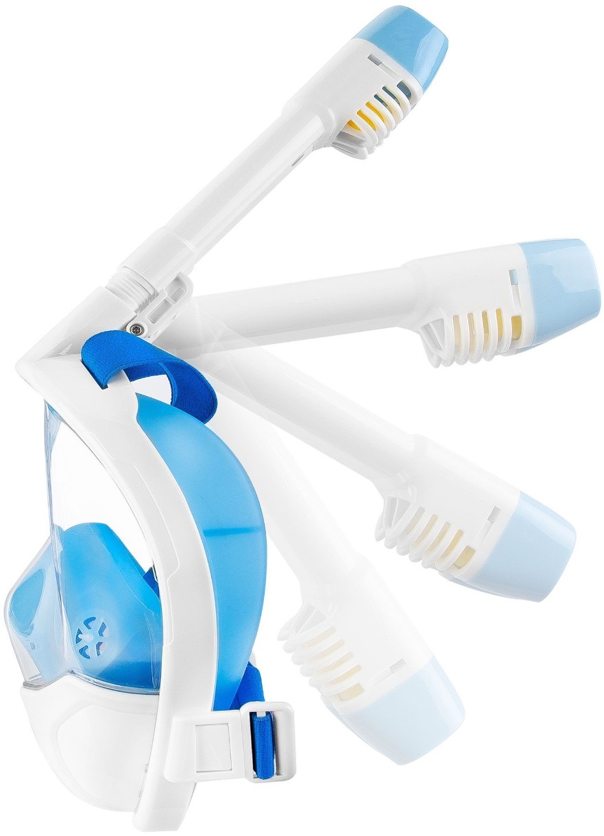 Маска дополнена полностью герметичной прямой складной трубкой из материалов высшего качества, которая имеет два запорных клапана и два канала для вдоха и выдоха. Этот раствор предотвращает попадание воды в маску во время ныряния. Клапаны автоматически поднимаются, когда вся маска погружается под поверхность воды, блокируя доступ к полной маске. Что важно, теплый воздух, которым мы дышим во время плавания, выходит наружу, благодаря чему очки в полнолицевой маске не испаряются.