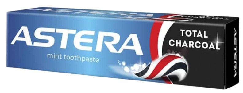 Зубная паста Astera Active + Total Charcoal обогащена активированным углем, кальцием и фтором для максимальной защиты от кариеса.