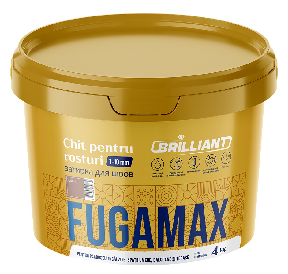 Затирка Brilliant Fugamax 251 Sienna 4 kg — это сухая цементная смесь для заполнения швов плиточных покрытий внутри и снаружи помещений, подходящая для керамической плитки, керамогранита, клинкера, мозаики и натурального или искусственного камня, применяемая в жилых, коммерческих и общественных зданиях, в том числе на тёплых полах, отличающаяся высокой износостойкостью, водоотталкивающими свойствами и долговечностью, с декоративным оттенком «сиена».