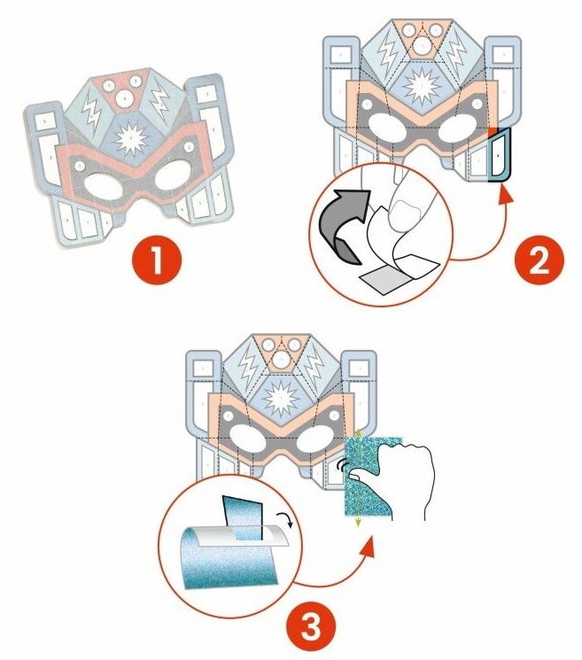 Приготовьтесь создать четыре маски суперроботов с металлическими деталями, которые заставят малышей почувствовать себя участниками происходящего.