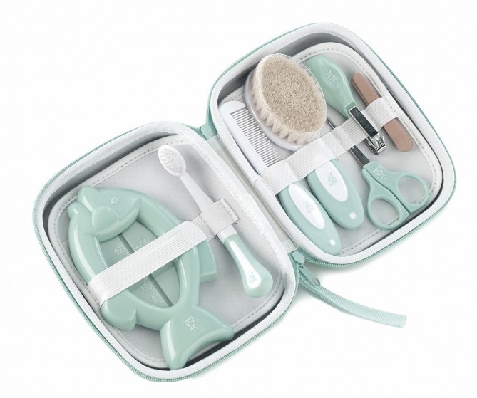 Всё, что нужно для базового ухода за ребенком в одном комплекте! Самый полный первый набор для гигиены вашего малыша. Безопасные и симпатичные приспособления облегчат гигиенические процедуры и сделают их максимально приятными! Все принадлежности упакованы в сумочку на молнии. Удобно взять с собой в путешествие, так как всё находится в одном месте и содержится в чистоте.