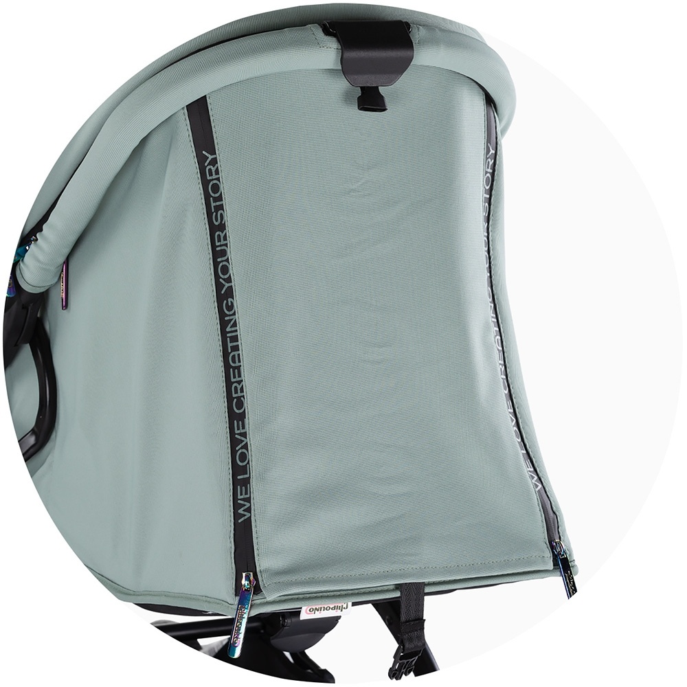 - Большой регулируемый капюшон с дополнительной сеткой и солнцезащитным козырьком;
