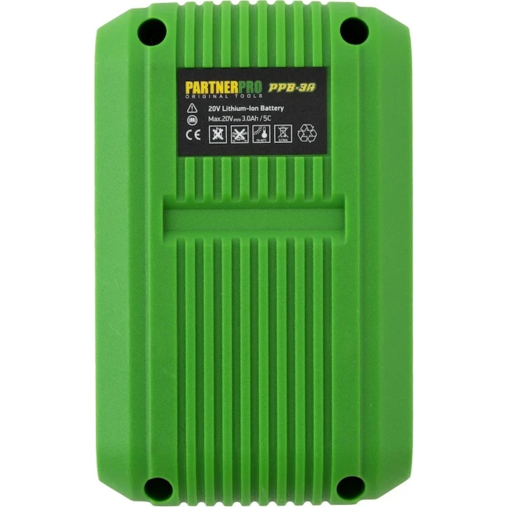 Аккумулятор PartnerPro PPB-3A — это литий-ионный (Li-ion) источник питания емкостью 3 А·ч и напряжением 20 В, предназначенный для электроинструментов серии Partner Pro. Обеспечивает надежную работу, оснащен защитой от перегрузок и совместим с широким спектром аккумуляторного инструмента.