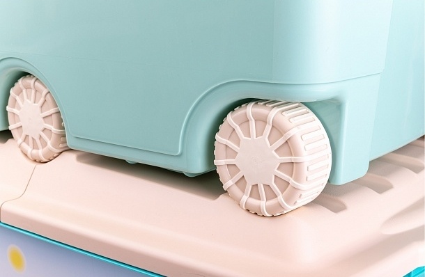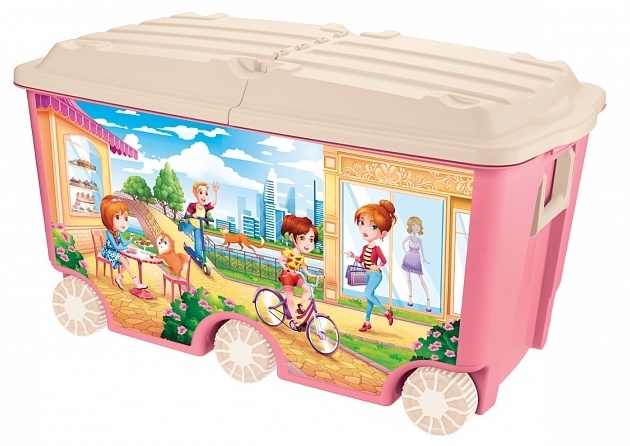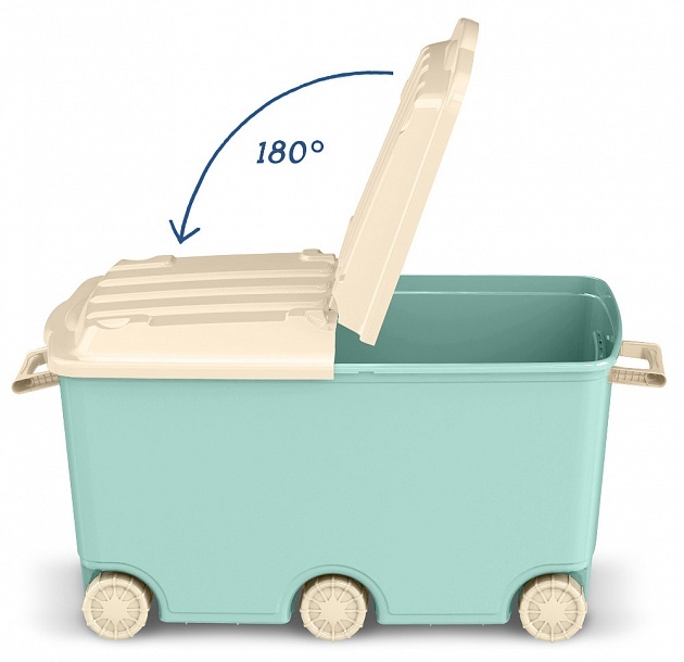 Большой ящик для игрушек на шести колёсах «Пластишка» вместит даже очень крупные игрушки и удачно впишется в интерьер детской комнаты. За надёжные складывающиеся ручки ящик удобно передвигать. Створки крышки откидываются на 180 градусов. Несколько ящиков можно поставить один на другой благодаря выемкам под колёса на крышке, а сами колёса покрыты эластичным материалом, который уменьшает скольжение и шум. Яркий декор нанесён с помощью IML-технологии: он не сотрётся с течением времени. Благодаря простой конструкции ящик легко моется. Выполнен из высококачественного надёжного пластика.