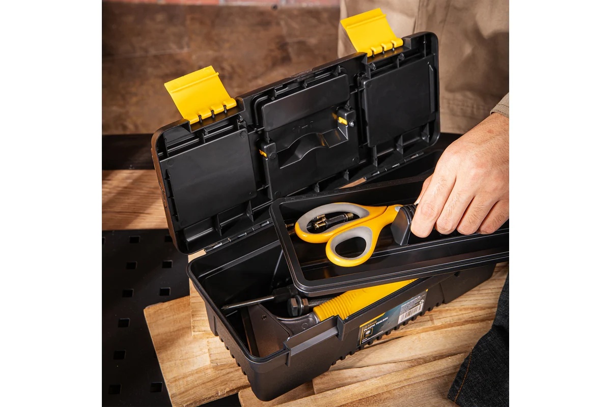 - Ручка для переноски и пластиковый замок обеспечивают удобство использования и безопасность хранения инструментов.