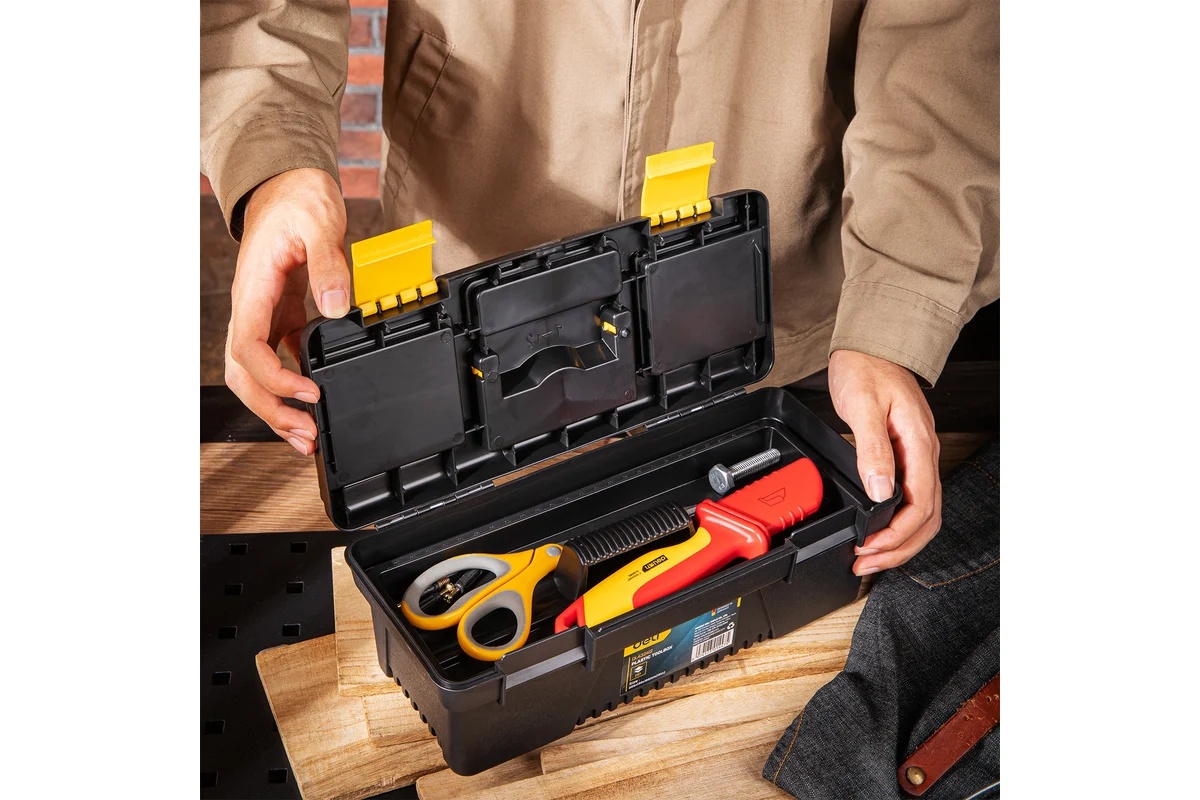 - Ящик для инструментов Deli DL432412 станет вашим надежным помощником в организации рабочего пространства.