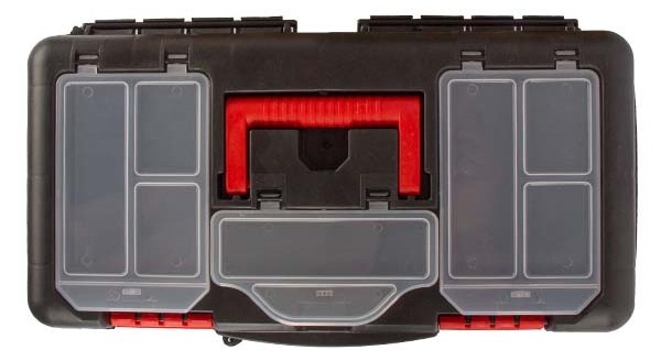 Ящик для инструментов состоит из отделений, крышки, ручки для переноски и пластикового замка. Кейс прочный и устойчивый, он защищает инструменты во время транспортировки и от внешних рисков. Используется для содержания и хранения ручных инструментов и других деталей.
