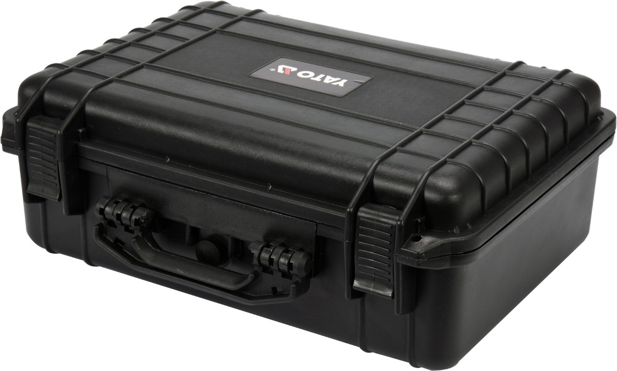 Ящик для инструментов YATO YT-08904 — плотный, водостойкий, пыленепроницаемый и ударопрочный герметичный чемоданчик, предназначен для хранения инструментов, фотографического и измерительного оборудования. Оснащен декомпрессионным клапаном.