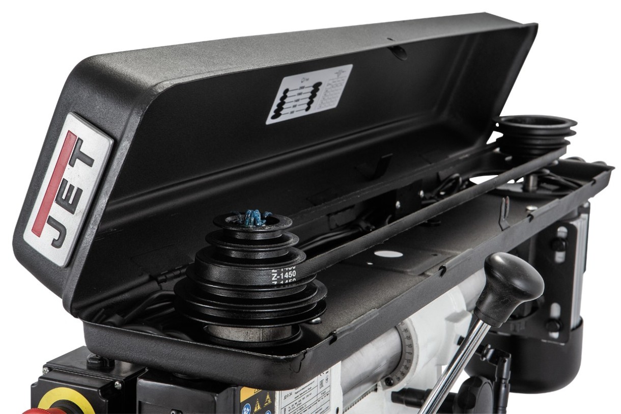 Крупный радиально-сверлильный станок Jet JDR-34F для напольной установки. Модель предназначена для эксплуатации в ремонтных мастерских с небольшими объёмами работ по сверлению и для использования в гараже или на даче в любительских целях. Конструкция сверлильной части позволяет менять вылет (расстояние до колонны) и наклон. Рабочий стол тоже не совсем обычный: он круглый и поворотный. Стандартные регулировки по высоте и по углу тоже предусмотрены. Такой набор возможностей по настройке позволяет устанавливать самые разные по форме и габаритам детали, а также точно сверлить отверстия в ряд или по окружности.