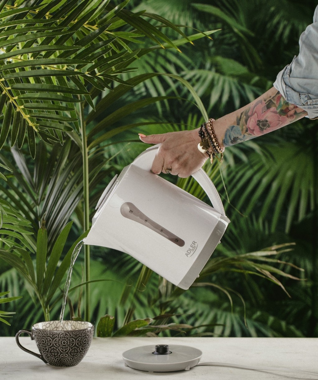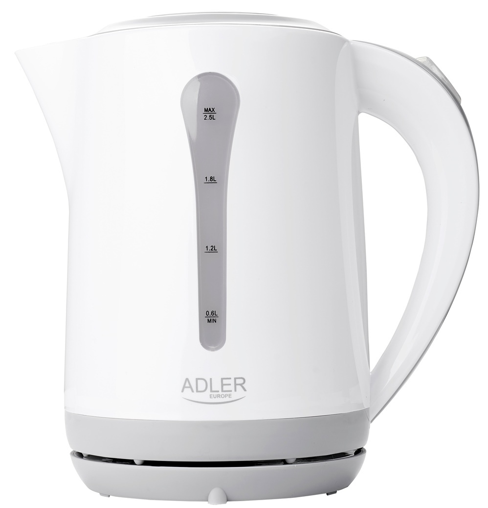 Большой электрический семейный чайник, позволяющий за один раз вскипятить воду на 8-9 человек благодаря мощности 2200 Вт. Чайник оснащен ярким индикатором уровня воды и автоматическим отключением, поэтому он выключится после закипания воды. Защита от выкипания не позволяет включить пустой чайник, что экономит электроэнергию и повышает безопасность пользователя. Кроме того, фильтр для сбора осадка обеспечит надлежащее качество воды. Для удобства пользователя чайник оснащен вращающимся на 360 градусов основанием и плоским дном. Современный и удобный чайник. Вмещает до 2,5 л воды. Доступен в классическом белом цвете.
