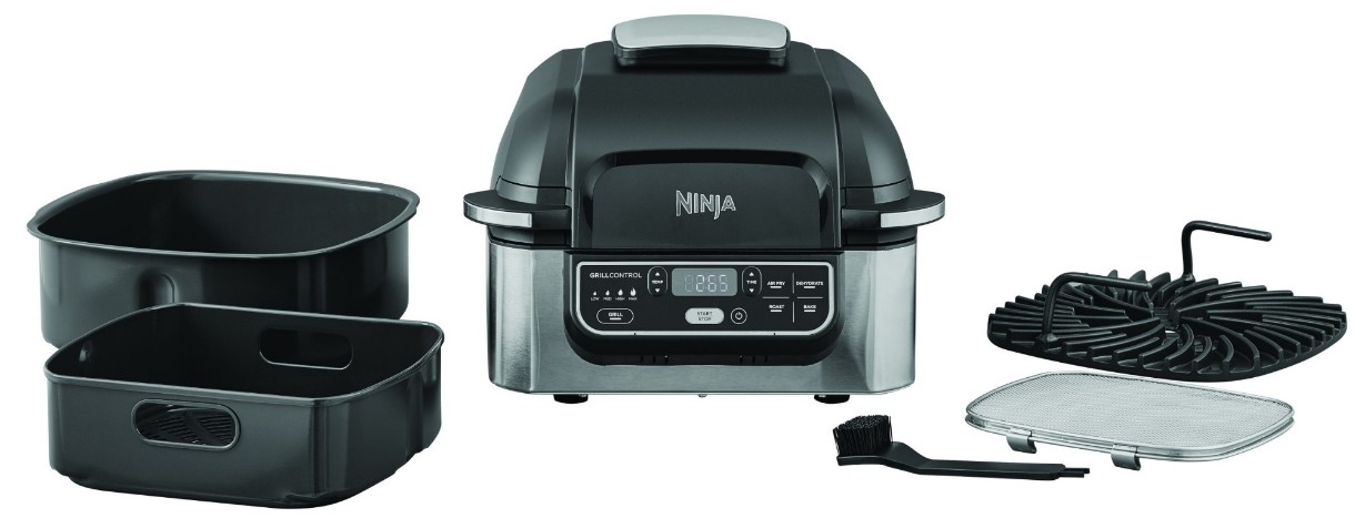 5,7 л кастрюля с керамическим покрытием, 1 x 3,8 л корзина для фритюра с керамическим покрытием, 1 x 560 см2 решетка для гриля с керамическим покрытием, 1 х Защита от брызг, 1 х Щетка для очищения