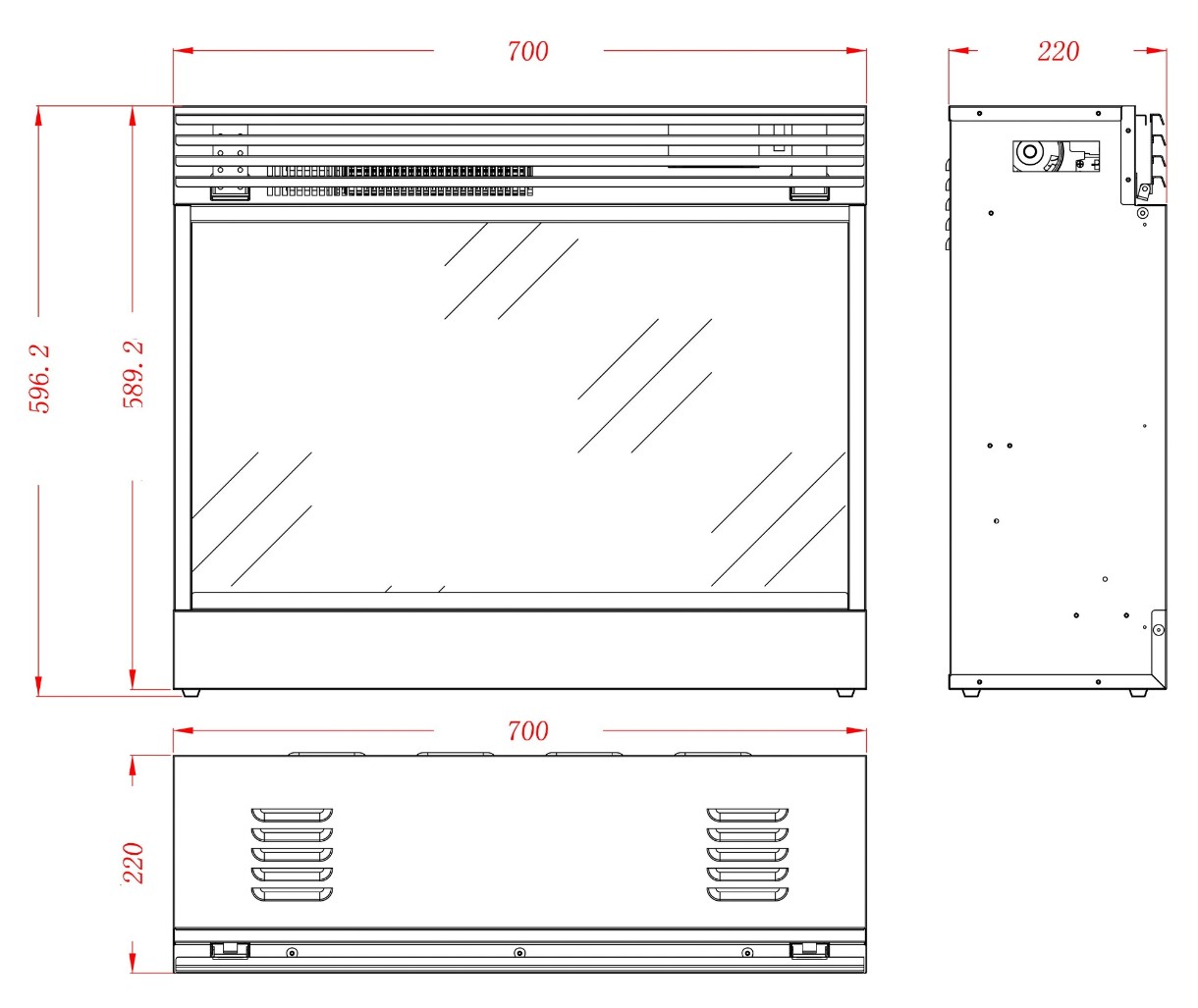 Габариты (ШxГxВ)700x220x596 мм