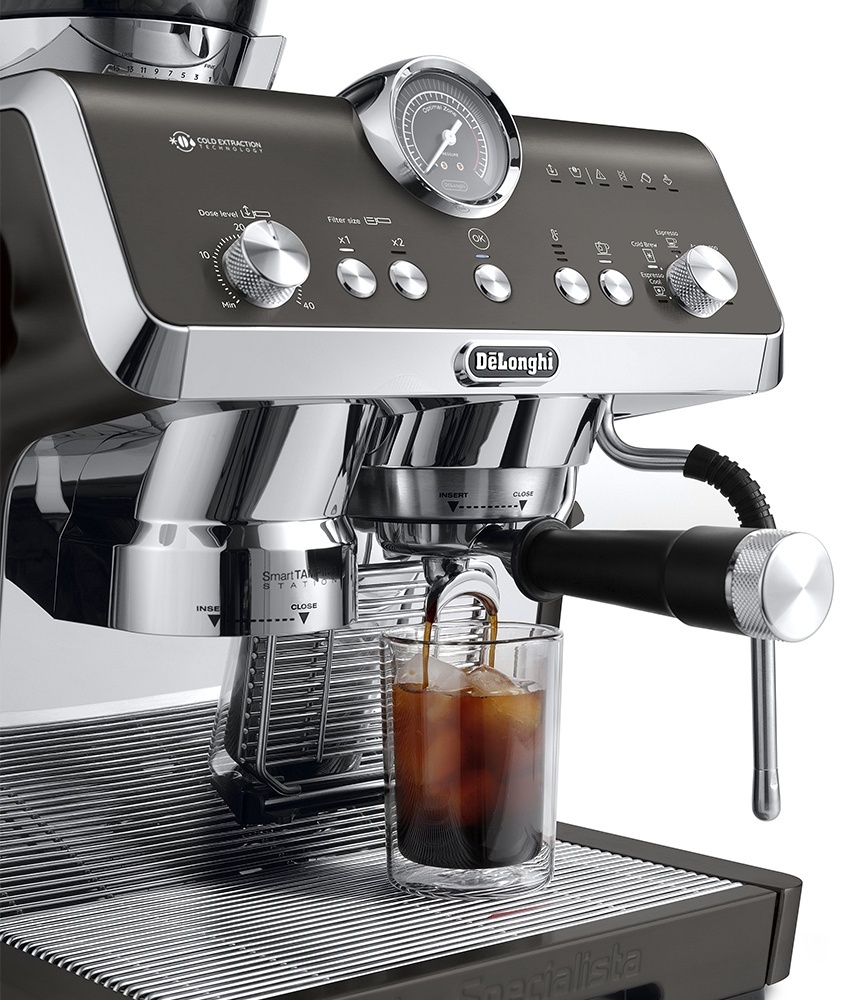 Кофе бариста дома с кофемашиной De`Longhi La Specialista Opera – качество, чашка за чашкой. Эта современная рожковая машина с портафильтром была разработана, чтобы подарить вам незабываемые вкусовые ощущения от каждой чашки. Благодаря инновационным технологиям, интегрированным на каждом этапе приготовления, вы всегда сможете сохранять полный контроль над процессом. Откройте для себя разнообразный выбор горячих и холодных напитков, включая эксклюзивный De'Longhi Espresso Cool. Активный контроль температуры для поддержания постоянной температуры воды на протяжении всего процесса заваривания. Встроенная кофемолка с 15 настройками помола Sensor Grinding Technology и 3 температурными профилями заваривания. Приготовьте холодный напиток менее чем за 5 минут и попробуйте новый Espresso Cool. Интеллектуальная набивочная станция обеспечивает большую точность. Паровая насадка с прохладным прикосновением обеспечивает более безопасное обращение и облегчает очистку, делая кофе еще более приятным.