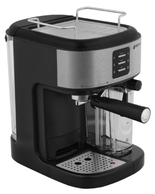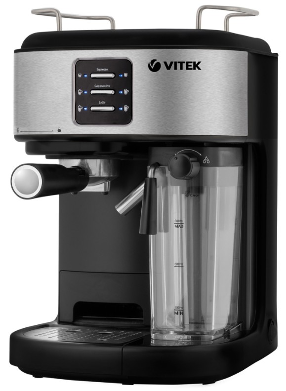 Чтобы каждое утро было действительно добрым, приобретите кофеварку VITEK VT-8489 с максимальной мощностью 1250 Вт (номинальная — 1050–1250 Вт). Устройство оборудовано итальянской помпой фирмы ULKA, обеспечивающей давление в 15 бар, благодаря чему напитки получаются необыкновенно насыщенными. Кроме того, прибор оснащен термоблоком, способствующим улучшению вкусовых качеств кофе, ускорению процесса приготовления и уменьшению затрат на электроэнергию. Кофеварка имеет уникальный фильтр, который позволяет получать идеальный эспрессо с густой ароматной пенкой. Этот напиток, а также капучино и латте готовятся нажатием на одну кнопку. Нажатием на другую вы можете взбить пышную молочную пену (емкость съемного резервуара для молока — 500 мл). Объем напитка выбирайте по желанию, используя специальные кнопки (для маленьких чашек в приборе имеется небольшая выдвижная платформа). Хотите подогреть посуду перед приготовлением кофе? Поместите чашки на платформу, расположенную сверху. Для особого комфорта в использовании кофеварка оборудована съемным резервуаром для воды емкостью 1,5 л и съемным поддоном для капель (в комплект также входит удобная мерная ложечка для молотого кофе). О включении прибора вас оповестит специальный индикатор, а в случае перегрева он отключится автоматически. Купите кофеварку VITEK VT-8489: почувствуйте себя настоящим гурманом!