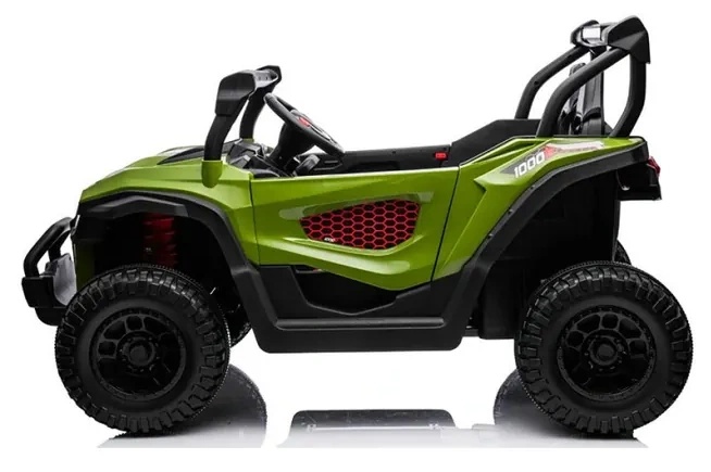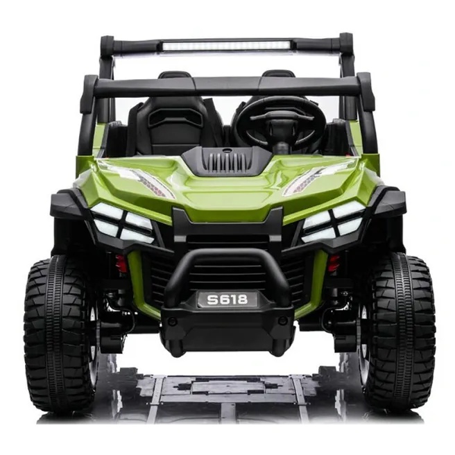 Детский электромобиль изготовлен по дизайну настоящего джипа. Он оборудован посадочным местом с кожаным сиденьем, а также имеет ремни безопасности. Предусмотрена возможность подключения Bluetooth, а также MP3, USB. Свет передних фар, приятная музыка и сигнал на руле будут развлекать ребенка во время езды. Пульт дистанционного управления с возможностью переключения скоростей входит в комплект.