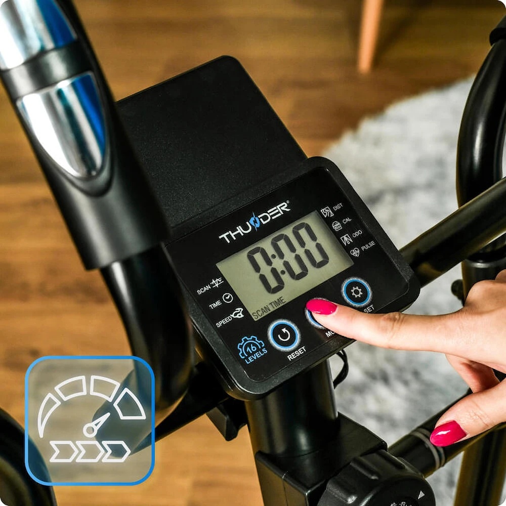 Ищете компактное, но современное устройство для домашних тренировок? Магнитный эллиптический тренажёр THUNDER® SPARKY — идеальное решение, сочетающее комфорт, функциональность и современные технологии, обеспечивая эффективную тренировку каждый день.