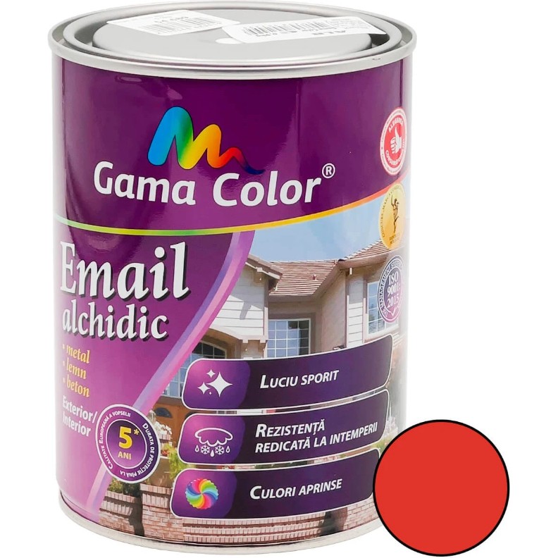 Эмаль алкидная Gama Color красная, глянцевая, 0.9 кг — это универсальное защитно-декоративное покрытие, которое сочетает в себе насыщенный цвет, высокий глянец и отличные эксплуатационные характеристики.