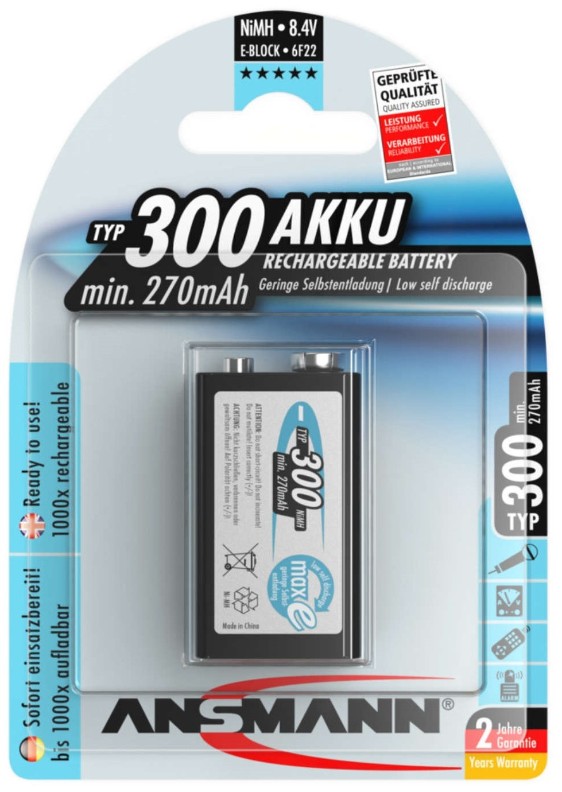 Батарейка Ansmann NiMH 6F22 300мАh 1pcs (5035453)
