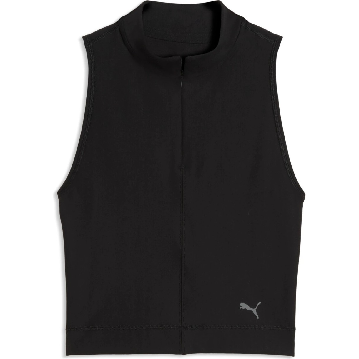 Майка имеет застёжку-молнию до середины груди для удобной вентиляции и декоративный шов на спине, который аккуратно подчёркивает форму. Логотип PUMA Cat на груди завершает спортивный образ и добавляет фирменный акцент.