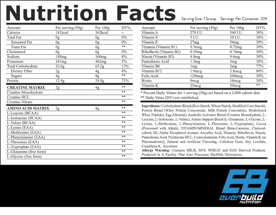 В отличие от многих гейнеров на рынке, EverBuild 100% Mass Build не содержит дешёвых сахаров, жиров и ненужных наполнителей. Продукт ориентирован не на «сладкий вкус», а на реальный результат — качественный набор сухой мышечной массы.
