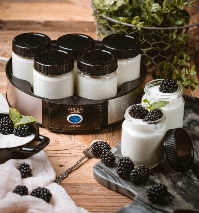 Йогуртница Adler AD 4476 позволяет приготовить йогурт невероятно простым способом. Для производства свежего, полезного йогурта достаточно трех вещей: молоко, бактериальные культуры и йогуртница Adler AD 4476. После размещения компонентов остальная часть процесса происходит автоматически без вмешательства пользователя. Йогурт создается сразу в стеклянных банках емкостью 200 мл каждая, что облегчает последующее удобное хранение готового продукта в холодильнике. Устройство поддерживает температуру дружественных молочных бактерий: 42 градуса, благодаря чему производство йогурта может происходить быстро и эффективно.