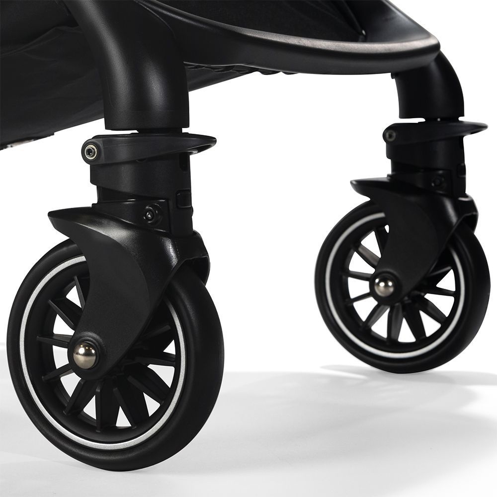 Родительская ручка имеет три положения высоты, поэтому подойдет родителям любого роста. Высота от ручки до пола - от 88 до 105 см. Пятиточечные ремни безопасности с мягкими накладками регулируются по высоте и длине, защитят малыша от случайного выпадения из коляски. Передние колеса поворотные с возможностью фиксации. Все колеса с амортизацией, коляска едет плавно и с легкостью преодолевает препятствия.