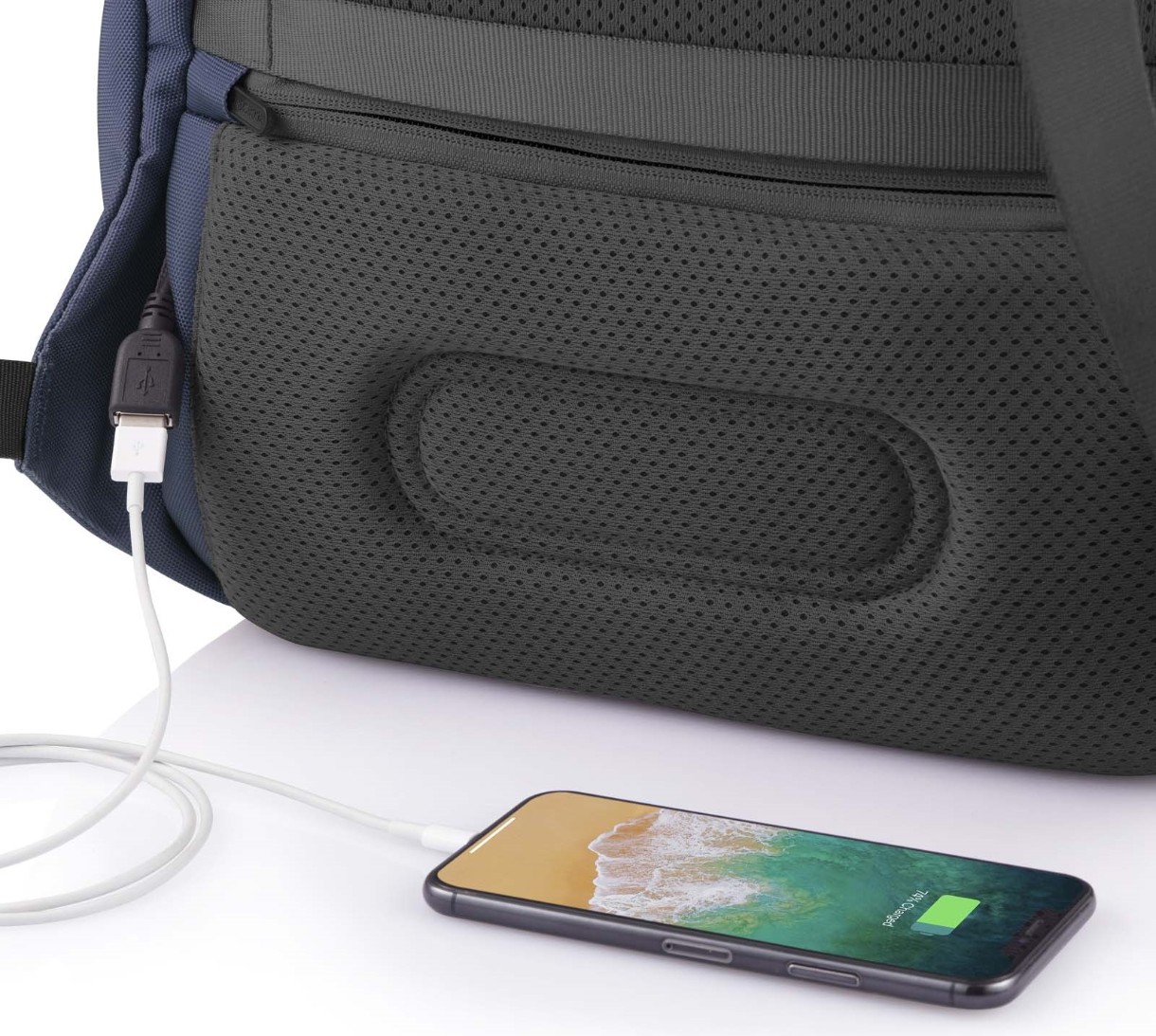 Во время путешествия гаджеты имеют свойство разряжаться. Положите в специальный карман внутри Bobby Soft повербанк, подключите его к USB кабелю. Снаружи, в районе правой лямки, находится выход USB, к которому можно подключить смартфон и заряжать прямо на ходу.