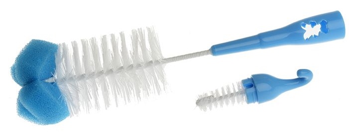 Набор специально разработанных щеток (больших и маленьких) для тщательной очистки бутылочек и сосок. Они позволяют точно удалить грязь в труднодоступных местах. Щетка большего размера дополнительно оснащена губкой, что позволяет более тщательно очищать внутреннюю часть бутылочки. Изготовлен из безопасных материалов. Синий цвет.