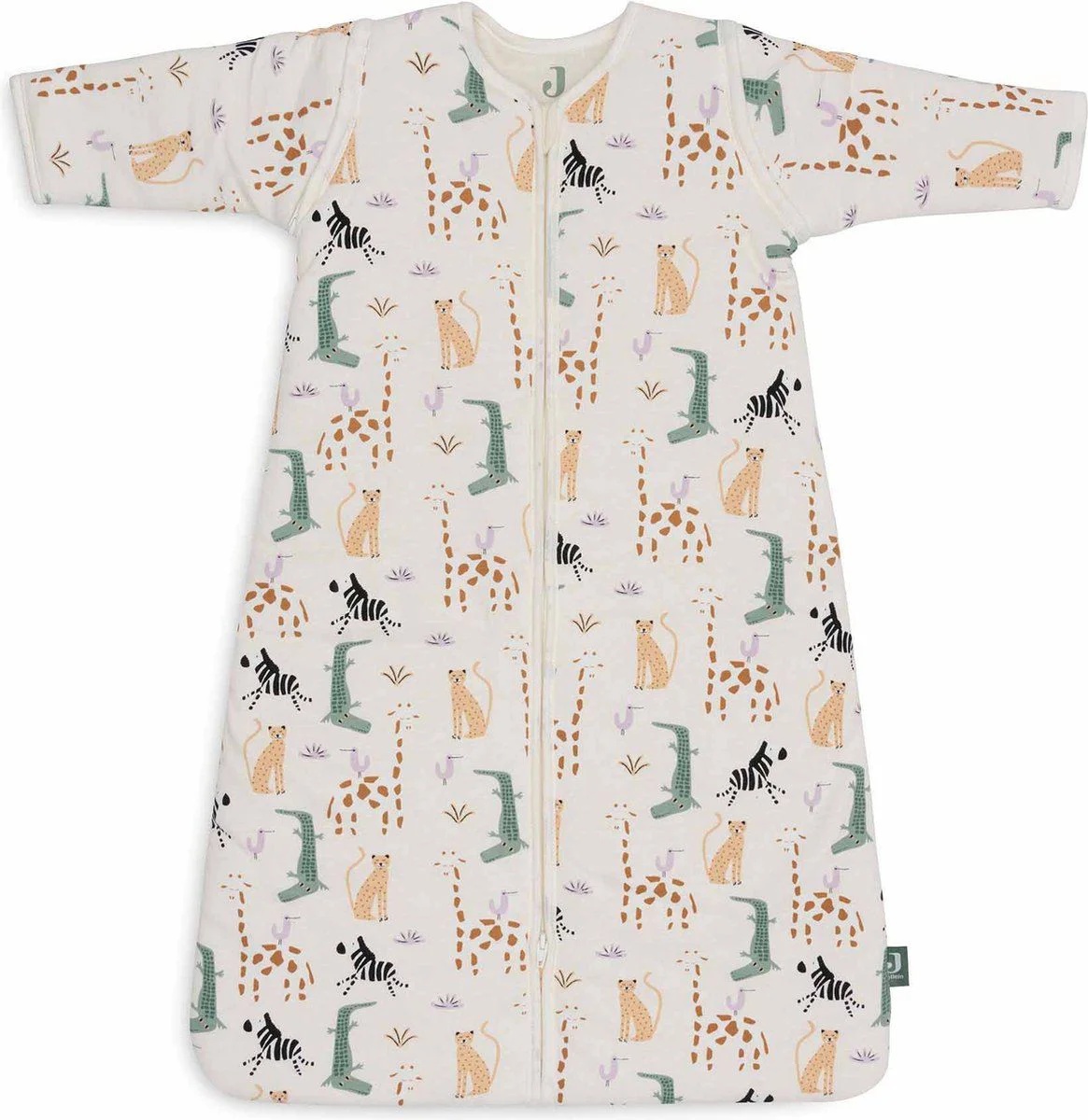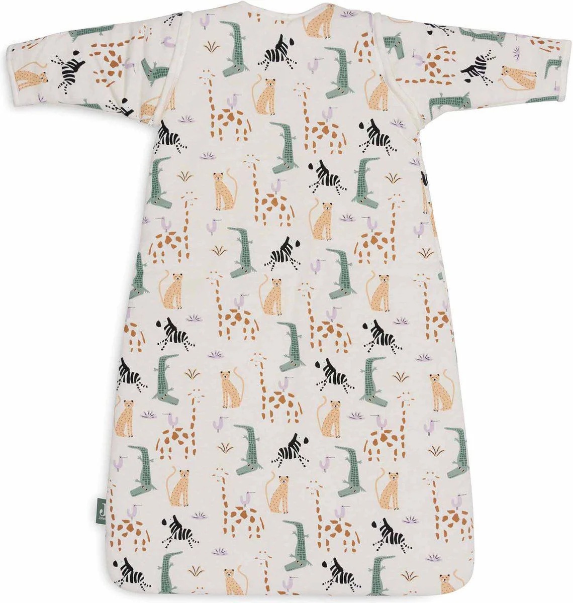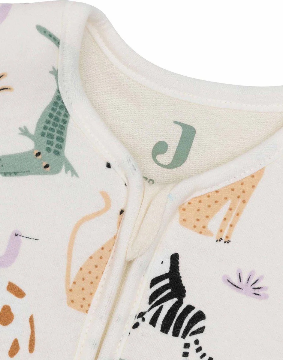 Обеспечьте вашему малышу уютный и тёплый сон с спальным мешком с отстёгивающимися рукавами Jollein Jungle Jambo, 70 см! Он изготовлен из мягкого, дышащего и приятного на ощупь материала, который гарантирует комфорт и безопасность круглый год. Дизайн Jungle Jambo с весёлым принтом джунглей добавит игривости и радости в сон вашего малыша.
