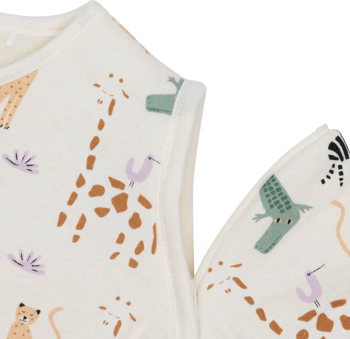 Спальный мешок с съёмными рукавами Jollein Jungle Jambo это идеальное решение для комфортного и безопасного сна вашего малыша в любое время года. Он изготовлен из мягкого, дышащего и приятного на ощупь материала, который помогает поддерживать комфортную температуру и создаёт уютную атмосферу.