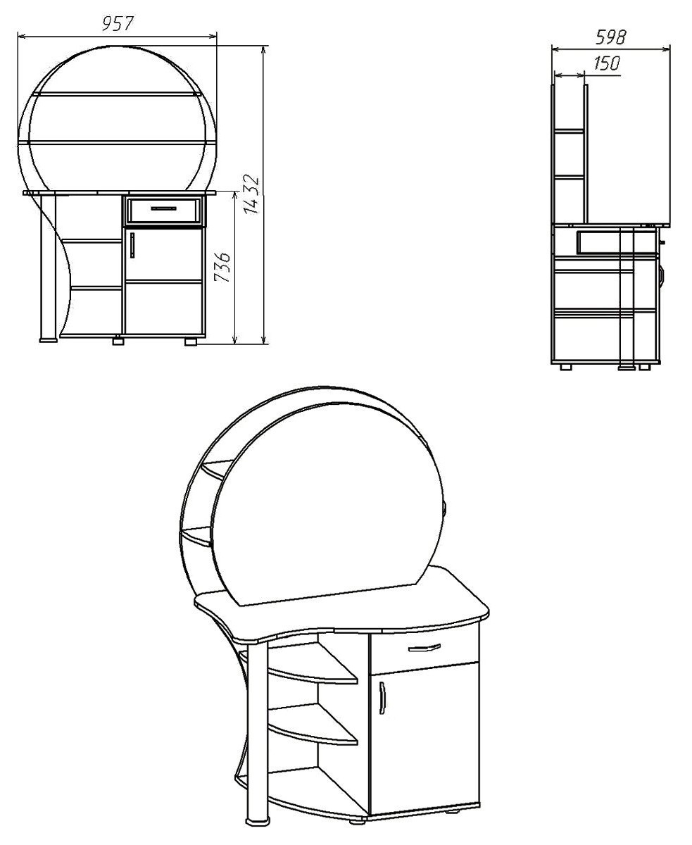Туалетный столик Компанит Трюмо-3 (Комплект) Нимфея Альба